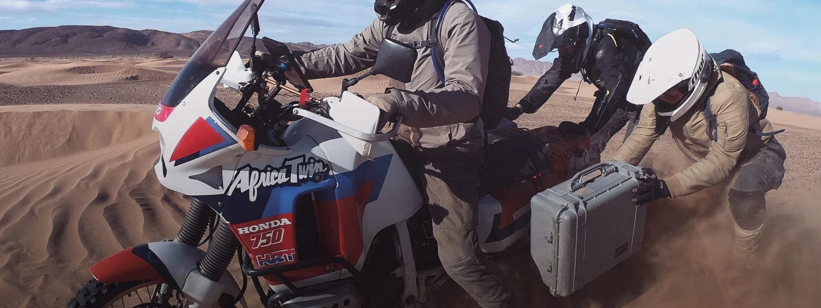 Soon after, we bought our first motorcycles: an Africa Twin and a Transalp, both from the late 80's and early 90's and inspired by those racing the famous race at these times. These bikes are totally out of fashion but very cheap, renowned for their reliability and can share a lot of parts, meaning there was less to carry and less to buy... We had to repair and prepare those 30-year-old antiques before going and spent a lot of time learning about mechanics while doing it, so when taking the road with them for the first time, after all this work to bring them to their natural element, we wanted to share our experience. To avoid boring all our relatives with motorcycle pictures we created a new account and needed a name. That's how HRT came to mind, even though we have some Suzukis, BMWs and Yamahas lost in the pack now!